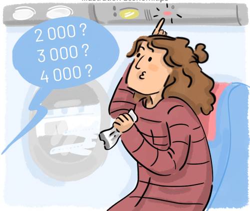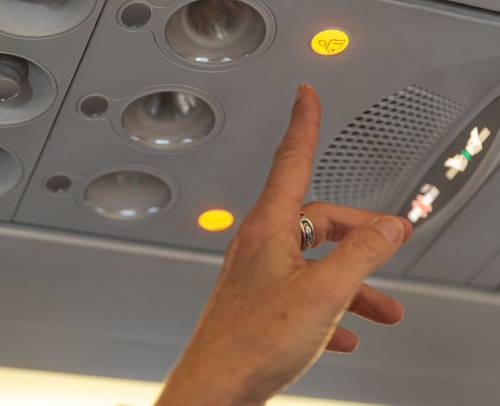 L'opération d'indemnisation organisée par la compagnie est un cas très exceptionnel. Généralement le "tri" des clients surbookés se fait avant l'embarquement. Un bouton d'appel dans un avion, 2020, photo : DR Le jeu d’enchères commence : le haut-parleur annonce tout d’abord 1 500 dollars. Personne ne bronche. Puis l’offre augmente : 2 000, 3 000… 4 000 dollars... Tracy appuie à toute vitesse sur le bouton : c’est gagné ! C’était la somme que son mari et elle avaient en tête. Illustration Économitips Un avion dans les airs, 2020 " Je vous céderais bien ma place, mais elle est occupée. " - Groucho Marx - Jeu concours : l'avant-première