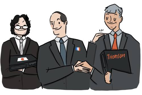 Or, le gouvernement français souhaite soutenir le champion national de l’électronique grand public, l’entreprise Thomson, qui vend, entre autres, des magnétoscopes.