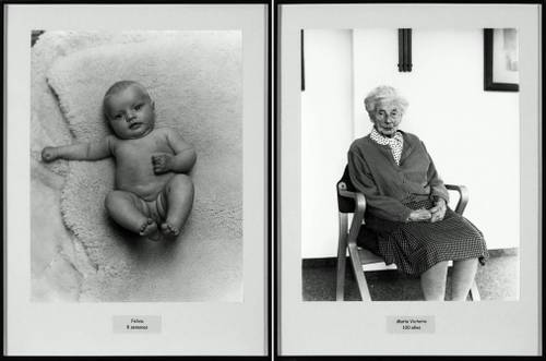 "La vie se délecte de la vie." William Blake Bonjour, 2001. Ils sont là, accrochés en frise. Le long d’un grand mur blanc, une centaine de cadres attendent les visiteurs. À première vue, ils n’ont rien de spécial… Hans-Peter Feldmann, 100 Jahre (100 ans), 2001, photographie, Musée d'art contemporain de Barcelone © ADAGP, Paris, 2021 Ce projet du photographe allemand Hans-Peter Feldmann, baptisé 100 Jahre (100 ans), aligne les portraits de 101 modèles passés devant son objectif. Ce sont des membres de sa famille, des amis et certaines de ses connaissances. Le seul critère de sélection ? Avoir entre 8 semaines et 100 ans. Hans-Peter Feldmann, 100 Jahre (100 ans), 2001, photographie, 30 x 24 cm. À gauche : Felina, 8 semaines. À droite : Maria Victoria, 100 ans. Musée d'art contemporain de Barcelone © ADAGP, Paris, 2021 En effet, chacune des 101 images doit correspondre à un âge précis : on peut ainsi rencontrer Élisa 17 ans, Boris 18 ans, Nora 19 ans, et ainsi de suite. Ces clichés ont tous été pris pendant trois années, au cours desquelles l’artiste a parfois dû attendre plusieurs mois pour que l’un de ses modèles atteigne l’âge voulu ! Hans-Peter Feldmann, 100 Jahre (100 ans), 2001, photographie, 30 x 24 cm. À gauche : Jasmin, 5 ans. À droite : Ginger + Yvonne, 11 ans. Musée d'art contemporain de Barcelone © ADAGP, Paris, 2021 Les portraits, accrochés de manière chronologique, proposent donc tous un moment de vie précis. Feldmann rend aussi hommage au travail d’un autre photographe, August Sander. À gauche : August Sander, Forgerons, 1926, photographie Feldmann imagine lui aussi un inventaire, mais cette fois, de ce que représentent 100 ans de vie humaine ! En immortalisant chacun des âges de la vie, l’artiste expose en même temps le passé, le présent et l’avenir de chacun d'entre nous. Un peu comme une machine à voyager dans le temps, en passant d’un cadre à l’autre… Hans-Peter Feldmann, 100 Jahre (100 ans), 2001, photographie, Musée d'art contemporain de Barcelone © ADAGP, Paris, 2021 Pour en savoir plus :