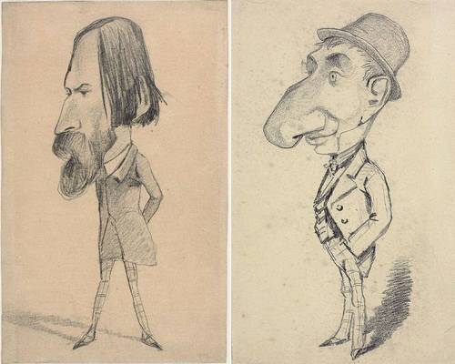 Ainsi dès ses quinze ans, Claude acquiert une petite notoriété grâce à cet art. Ses caricatures sont d’ailleurs exposées chez un papetier du Havre et se vendent bien. À gauche : Claude Monet, Caricature d'Auguste Vacquerie, 1859, pastel sur papier, 28 x 17 cm, Art Institute of Chicago, Chicago
