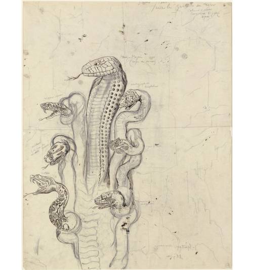 "Pour qui sont ces serpents qui sifflent sur vos têtes ?" Jean Racine Bonjour, 1876. Le peintre Gustave Moreau travaille à un tableau grandiose. Et il ne fait pas les choses à moitié ! Chaque détail doit être absolument parfait… Gustave Moreau, Hercule et l'hydre de Lerne, 1875-1876, huile sur toile, 179 x 154 cm, Art Institute of Chicago, Chicago, photo : Shonagon Pour illustrer ce sujet fameux, Moreau veut être le plus crédible possible et multiplie des études préparatoires. Il part donc chercher son inspiration dans des livres consacrés aux reptiles. Cela ne lui suffit pas, le peintre a besoin d’un véritable modèle. Sauf que les hydres, ça ne court heureusement pas les rues de Paris… Cornelis Cort, Hercule tuant l'hydre de Lerne, vers 1565, gravure, Bibliothèque municipale de Lyon, Lyon, photo : Bedwyr Coup de chance, le Muséum national d’Histoire naturelle dispose d’un vivarium où grouillent d’innombrables espèces de reptiles. Moreau finit par porter son attention sur les serpents, dont l’apparence se rapproche le plus de son projet d’hydre. Ainsi, dans son tableau, chaque tête de la créature correspond à un véritable modèle ! Gustave Moreau, Étude de l'hydre pour Hercule et l'hydre de Lerne, vers 1875, dessin à la plume, 64 x 50 cm, Musée Gustave Moreau, Paris, photo : © RMN-Grand Palais / René-Gabriel Ojéda Au-delà de son extrême minutie, l’œuvre de Moreau a également un sens politique. En effet, le peintre est encore chamboulé par l’humiliante défaite française, cinq ans plus tôt, face à la Prusse. Il avait lui-même participé aux combats. Il aurait donc personnifié les deux nations où la France serait Hercule et l’ennemi, l’hydre. Sauf que dans le mythe, c’est Hercule qui triomphe. Moreau en profiterait-il pour rejouer la fin de l’histoire ? Gustave Moreau, Autoportrait, 1850, huile sur toile, 41 x 32 cm, Musée Gustave Moreau, Paris, photo : Utrechtse Gustave Moreau, Feuille d'études de serpents pour Hercule et l'hydre de Lerne, vers 1875, aquarelle, 28 x 22 cm, Musée Gustave Moreau, Paris, photo : © RMN-Grand Palais / René-Gabriel Ojéda " Pour qui sont ces serpents qui sifflent sur vos têtes ? " - Jean Racine - En un clic, dites-nous si par rapport à d'habitude : Des conseils, des idées, des critiques ? Copyright © Artly Production SAS, Tous droits réservés.