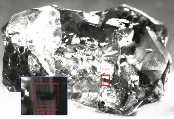 Son voyage a commencé en remontant des profondeurs d’un volcan, pour se retrouver dans les mains d’un mineur du Mato Grosso au Brésil. Il a ensuite poursuivi sa route jusqu’à l’université d’Alberta, au Canada, où Enrica Nestola, une étudiante de l’équipe de Graham Pearson, s’y intéresse. L’étudiante cherche à analyser le diamant. |