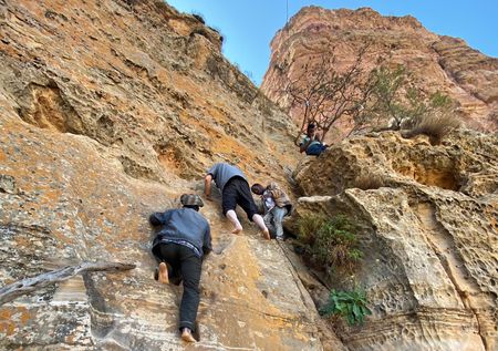 Des pèlerins gravissant la montagne pour découvrir l'église Abuna Yemata, massif du Gheralta, Éthiopie. Photo : Evan Williams, CC BY 4.0