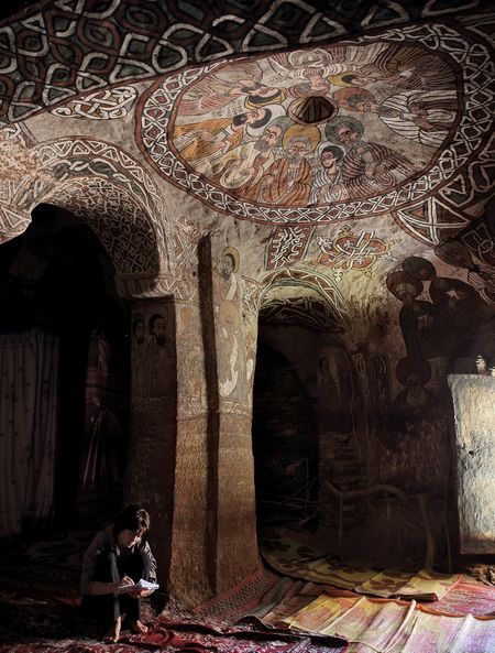 En effet, des centaines de fresques colorées ont été peintes sur les murs. Réalisées sur une couche préparatoire composée de paille et de terre rouge, elles relatent plusieurs scènes de la Bible. Cerise sur le gâteau : grâce au climat sec de la région, et à la difficulté pour y accéder, ces fresques sont encore en parfait état !