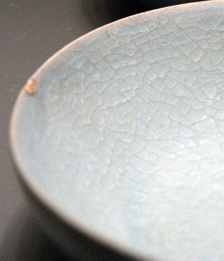 La céramique Ru a en effet une esthétique particulière, très simple : de fines craquelures, qui se forment après la cuisson lors du refroidissement, et une couleur unique. Ce bleu-vert appelé "céladon" imiterait la teinte du ciel après la pluie...