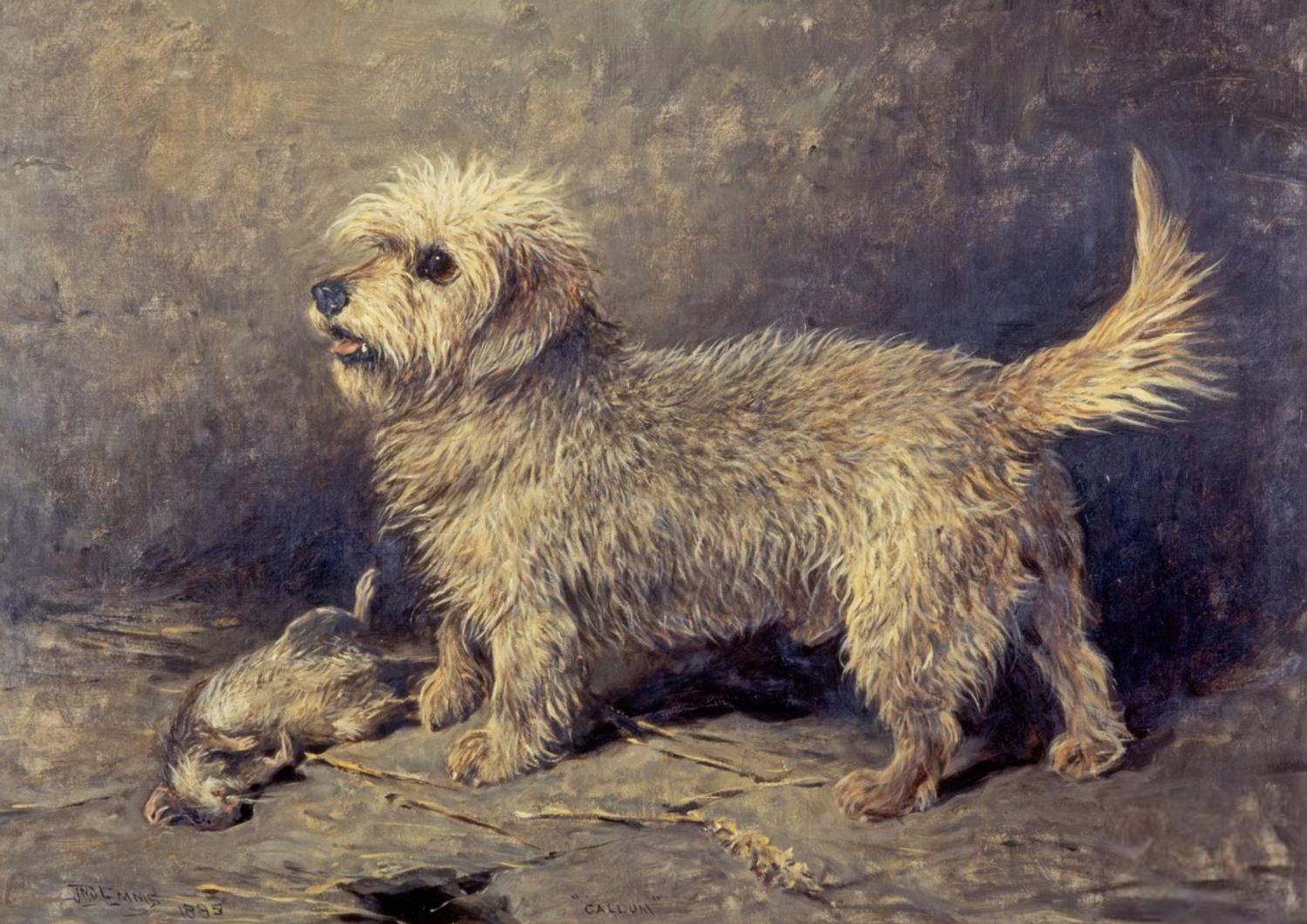 Un Dandie Dinmont Terrier devant le portrait de Callum. Photo : DR