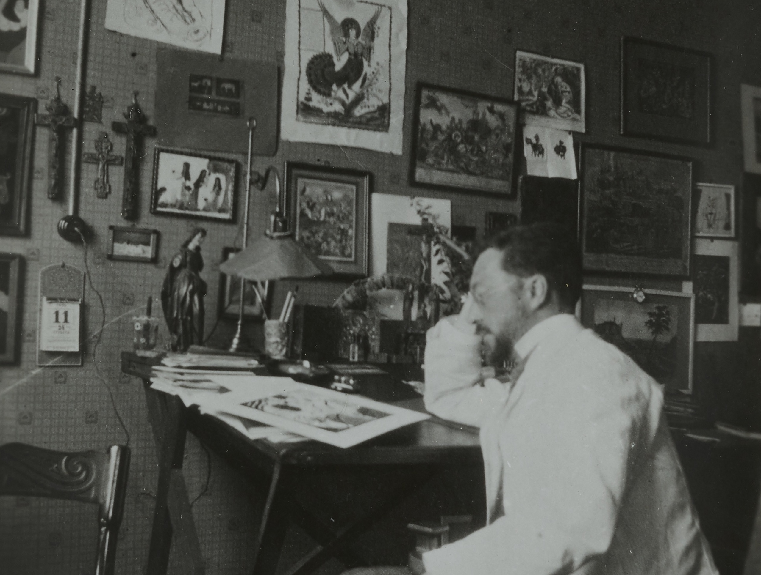 Les photographies scientifiques ont inspiré Kandinsky sur la fin de sa vie, mais pas seulement ! Tout au long de sa carrière, l’artiste s’est entouré de multiples images : photos personnelles, tableaux de ses confrères, articles de presse, reproductions…