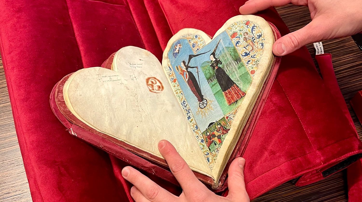 Des peintres de la cour de Savoie sont chargés de lui fabriquer un objet sans précédent : un livre en forme de cœur. La forme, visible lorsque le manuscrit est fermé, se déploie en deux cœurs accolés quand on l’ouvre, comme le symbole de l’union des amants.