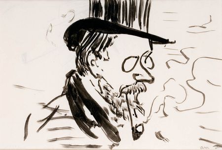Albert Marquet, Matisse en haut-de-forme, vers 1900, dessin à l'encre de Chine, 18 x 27 cm
