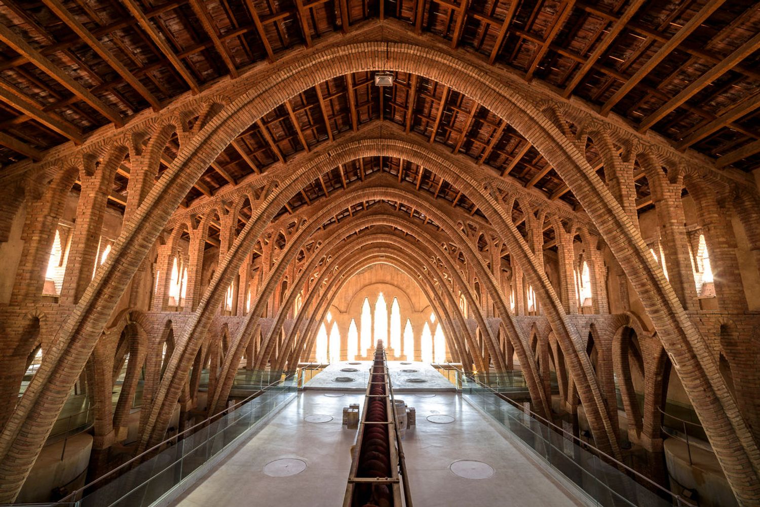 Cela lui permet d’imaginer d’immenses bâtiments, inspirés de l’architecture religieuse. Les arcs dits "paraboliques" (c’est-à-dire avec une certaine courbe) de la structure dégagent assez d’espace pour placer les cuves à vin. Ce n’est pas tout : cette hauteur impressionnante, les nombreux trous d’aérations et l’afflux de lumière naturelle régulent la température... et évacuent les gaz dus à la fermentation du raisin.