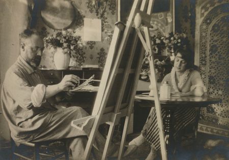 Henri Matisse peignant le modèle Henriette Darricarrère, atelier de la place Charles-Félix, Nice, 1921. Photo : Archives Henri Matisse, Issy-les-Moulineaux, DR