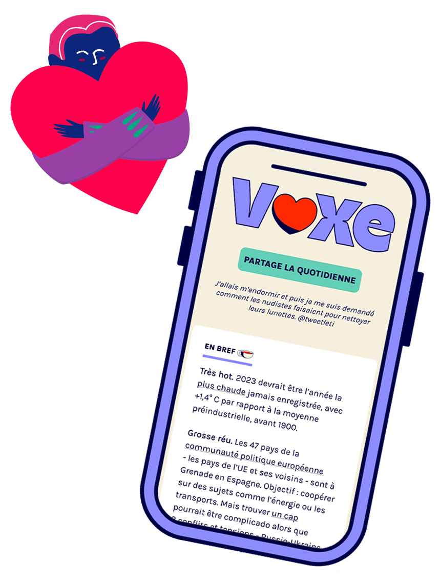 Envie de vous informer autrement ? Justement, La Quotidienne de Voxe, c’est une newsletter claire et concise à picorer chaque matin, le temps d’un café. À chaque jour sa dose d’actualités pour se muscler le cerveau et se tenir au courant de façon claire et documentée.
