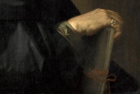 Dans ses mains, on peut voir les lettres de la correspondance qu’il entretient avec son mécène. Quant à la pierre taillée en pyramide qui orne sa bague, forme géométrique réputée la plus stable, elle symbolise la constance de leur amitié.