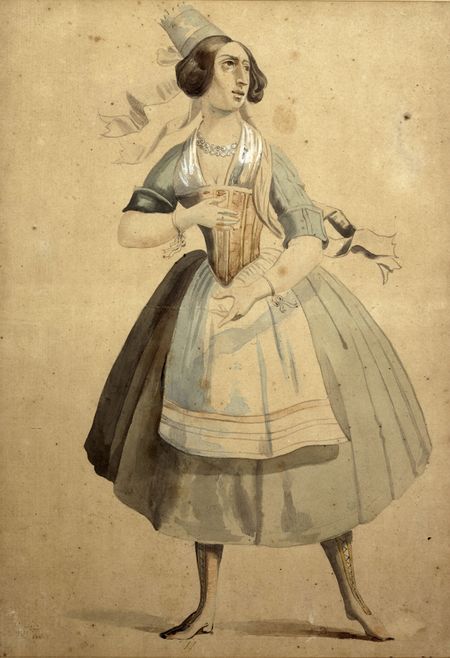 Jules Dupré, George Sand en costume de Berrichonne, vers 1850, aquarelle et gouache sur papier, 44 x 31 cm, Musée de la Vie Romantique, Paris