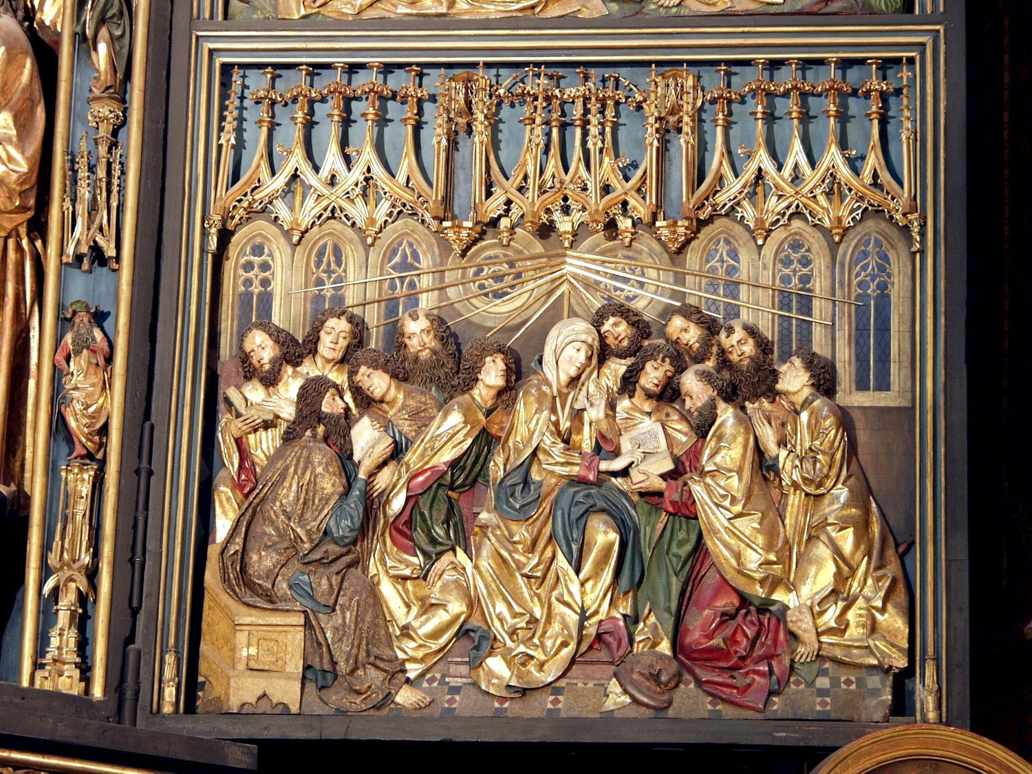Détail du retable, panneau de la Pentecôte. Photo : Robert Breuer CC BY-SA 3.0