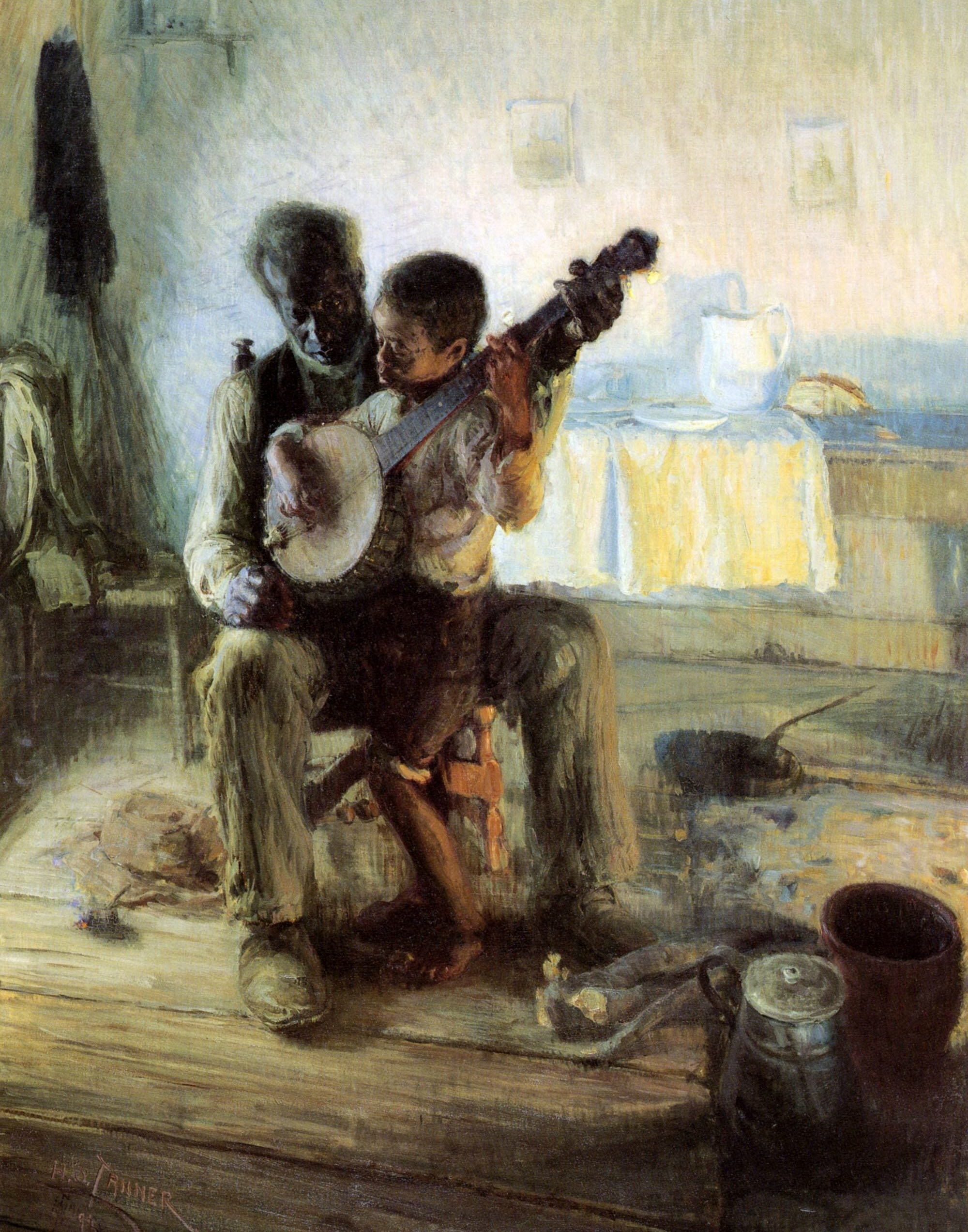 Henry Ossawa Tanner, La Leçon de banjo, 1893, huile sur toile, 124 x 90 cm, Musée d'art de l'Université de Hampton