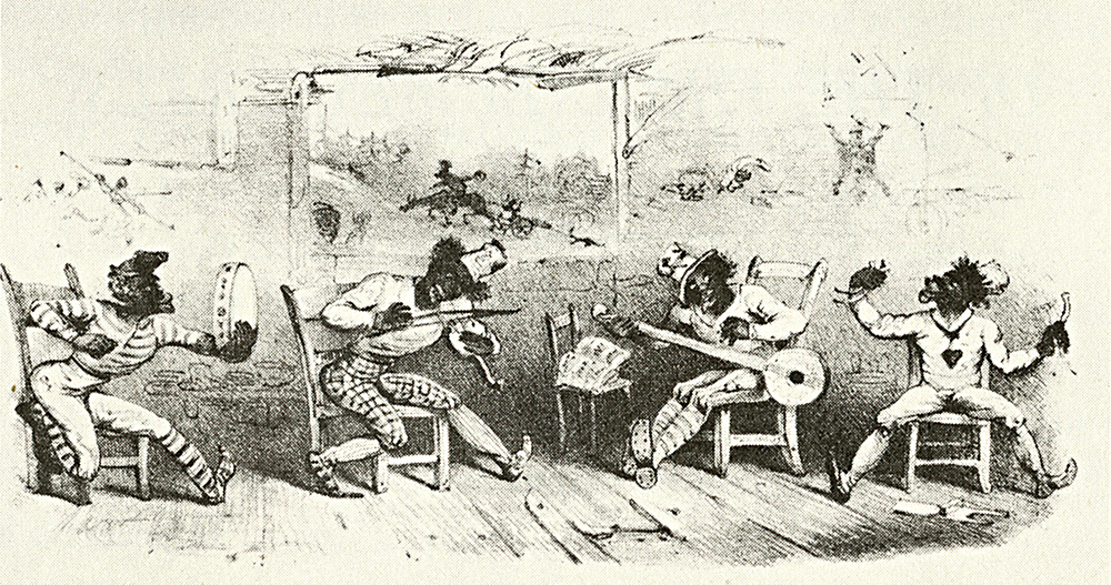 Caricature raciste de musiciens noirs jouant du banjo, Hans Nathan, 1843