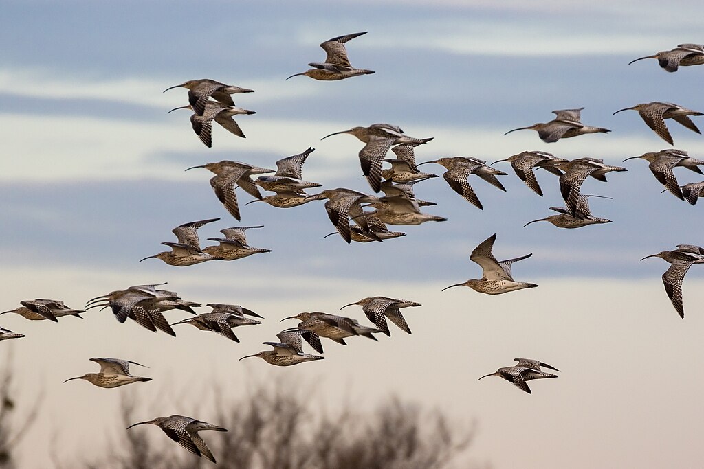 Volée de courlis cendrés dans le delta du Rhin. Photo : Joachim Kohler Brême, 2017