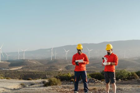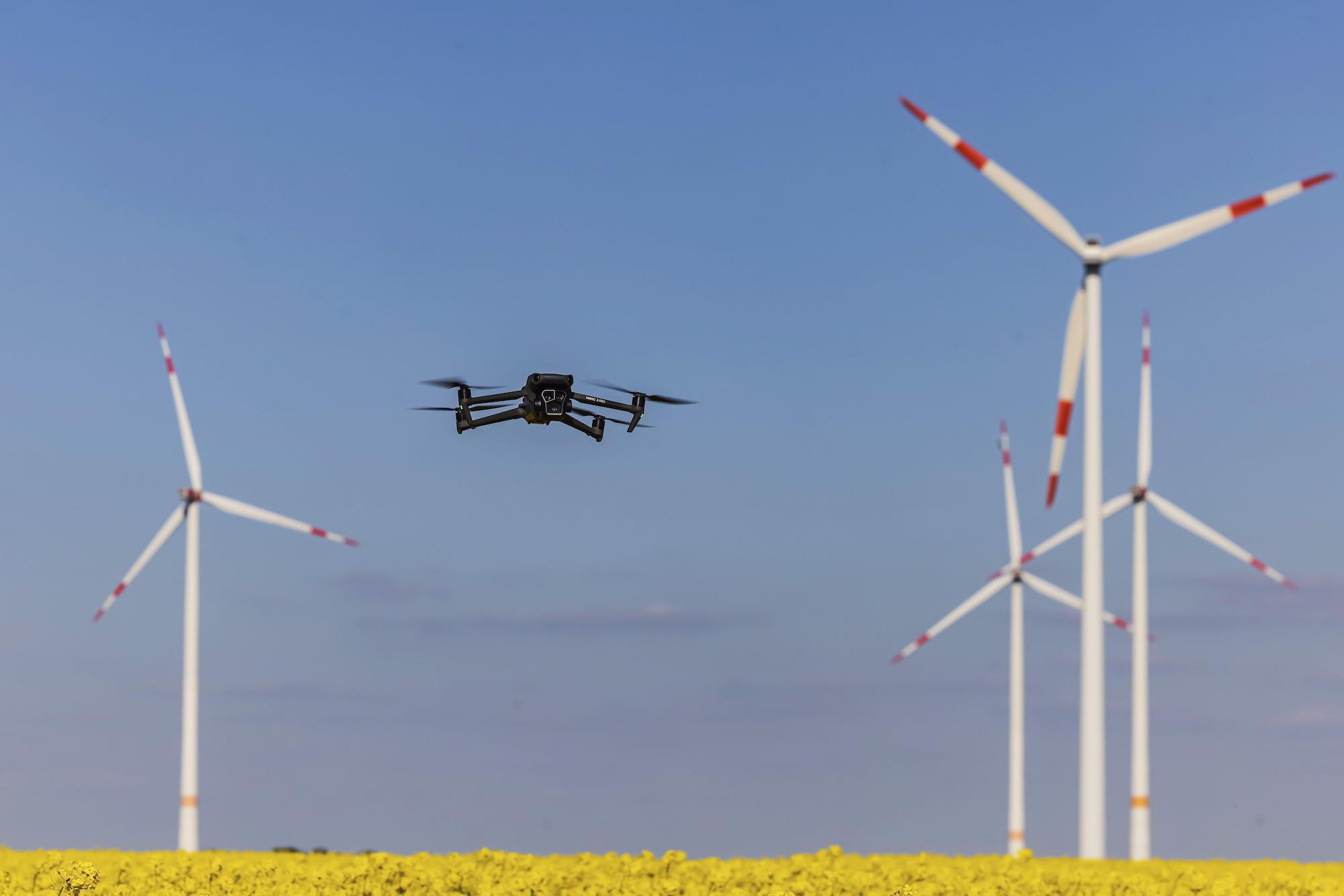 Un drone dans un parc éolien. Photo : Arnulf Hettrich, Alamy Images