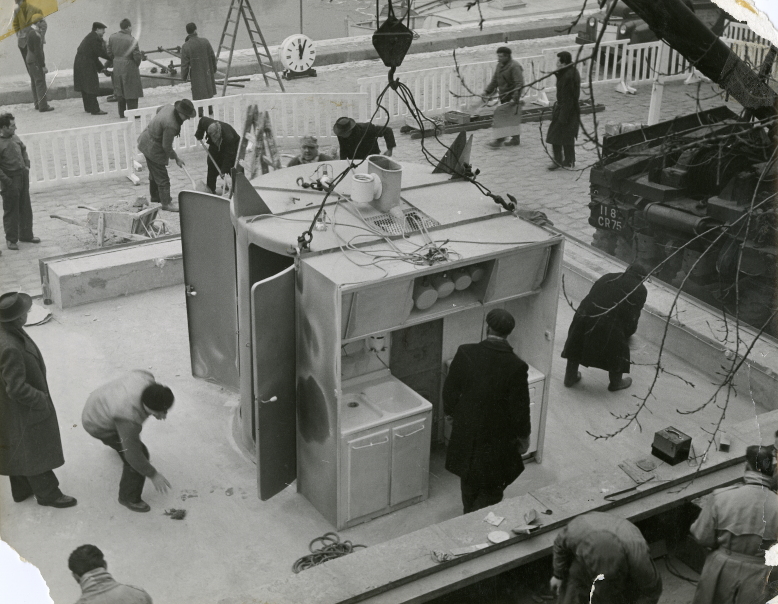 1956. Sur les quais de Seine, au cœur de Paris, une grue dépose un étrange bloc de bois et d’aluminium. Puis une cuisine arrive par les airs. En quelques heures à peine, c’est une maison entière qui prend forme !