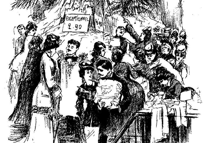 "Le jour du blanc"(détail), illustration d’Au Bonheur des Dames publiée dans Œuvres complètes illustrées de Émile Zola, Fasquelle, 1906