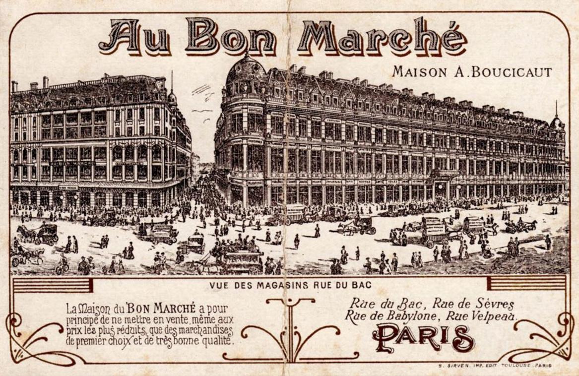 Doté d’un sens des affaires aussi aiguisé que son double littéraire, Boucicaut est connu pour avoir révolutionné le commerce au milieu du 19e siècle alors qu’il dirige, avec son épouse Marguerite, le florissant établissement du Bon Marché à Paris. Il n’a cependant pas tout inventé tout seul !