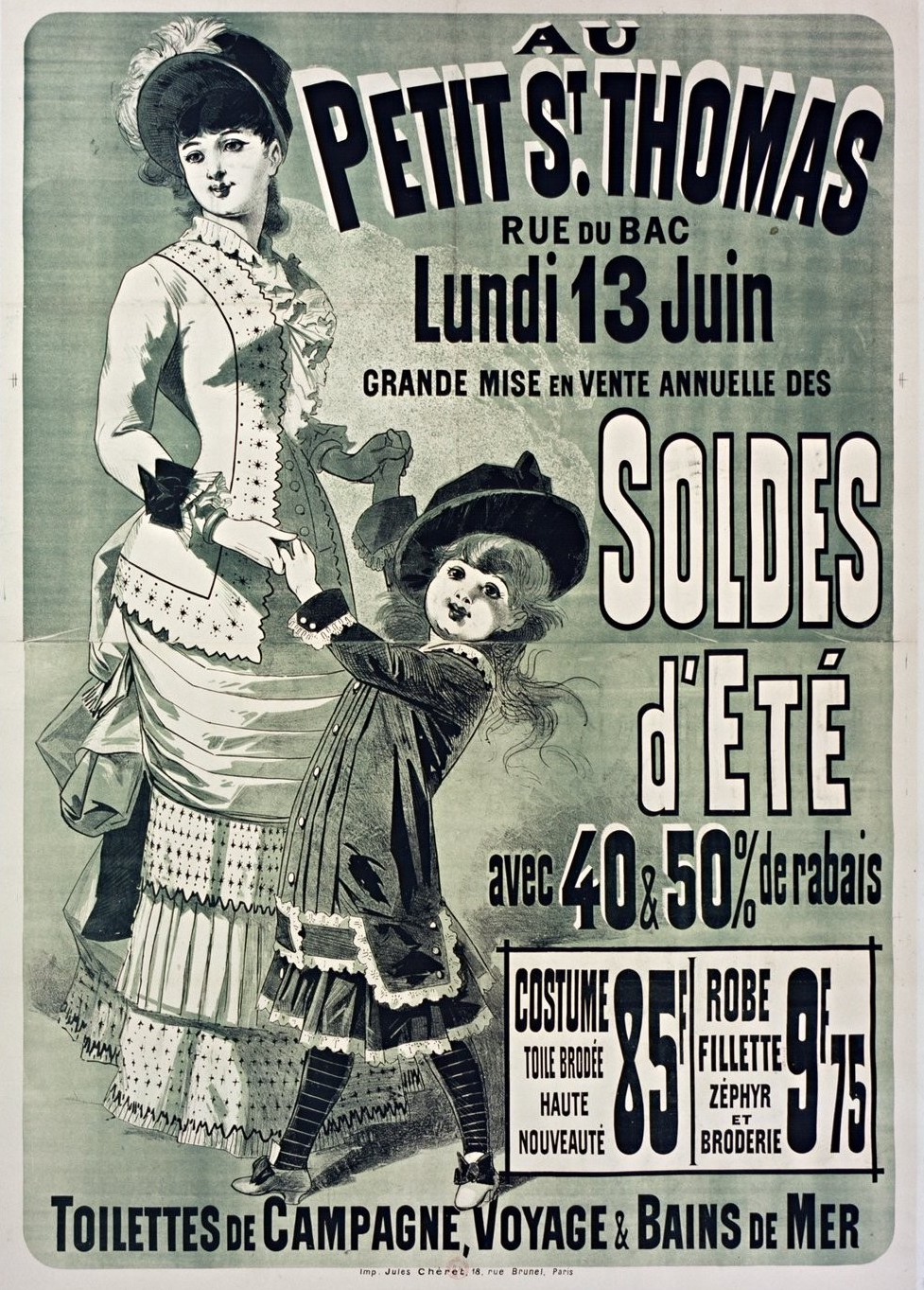 Jules Chéret, affiche publicitaire pour les soldes d’été au Petit Saint-Thomas, 1880-1882