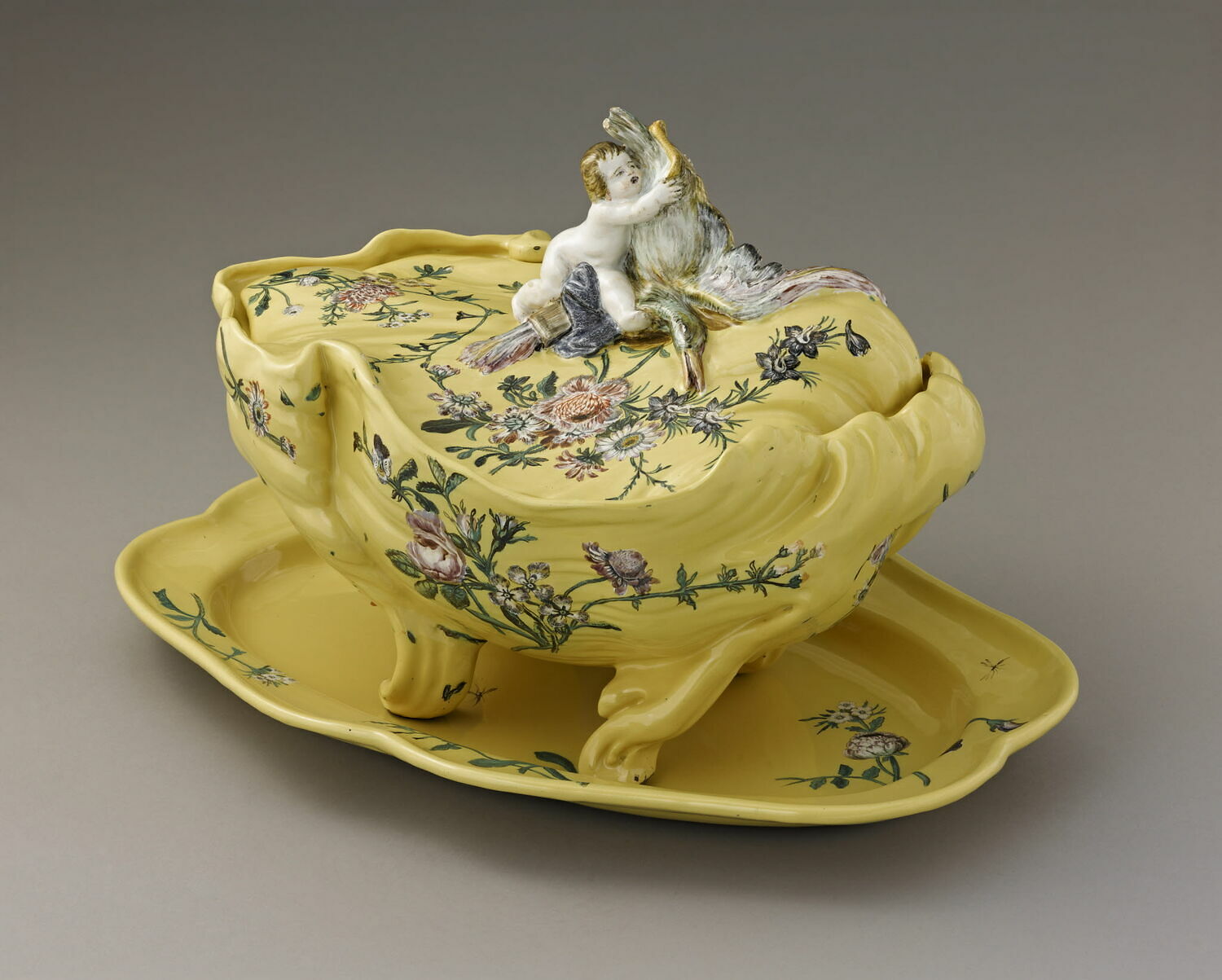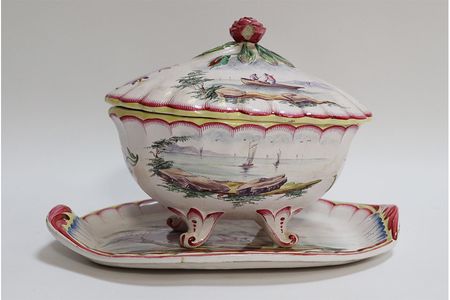 Bonbonnière et son présentoir en faïence émaillée, Manufacture de la Veuve Perrin, début du 19e siècle, 16 x 18 cm. Photo : Artpaugée, DR
