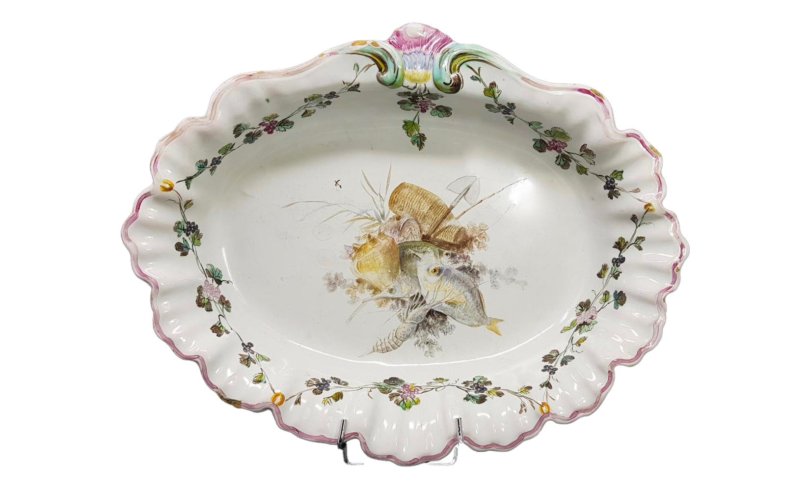 Bassin en faïence à décor "aux poissons", Manufacture de la Veuve Perrin, deuxième moitié du 18e siècle, 29 x 37 cm. Photo : Ivoire Nîmes, DR