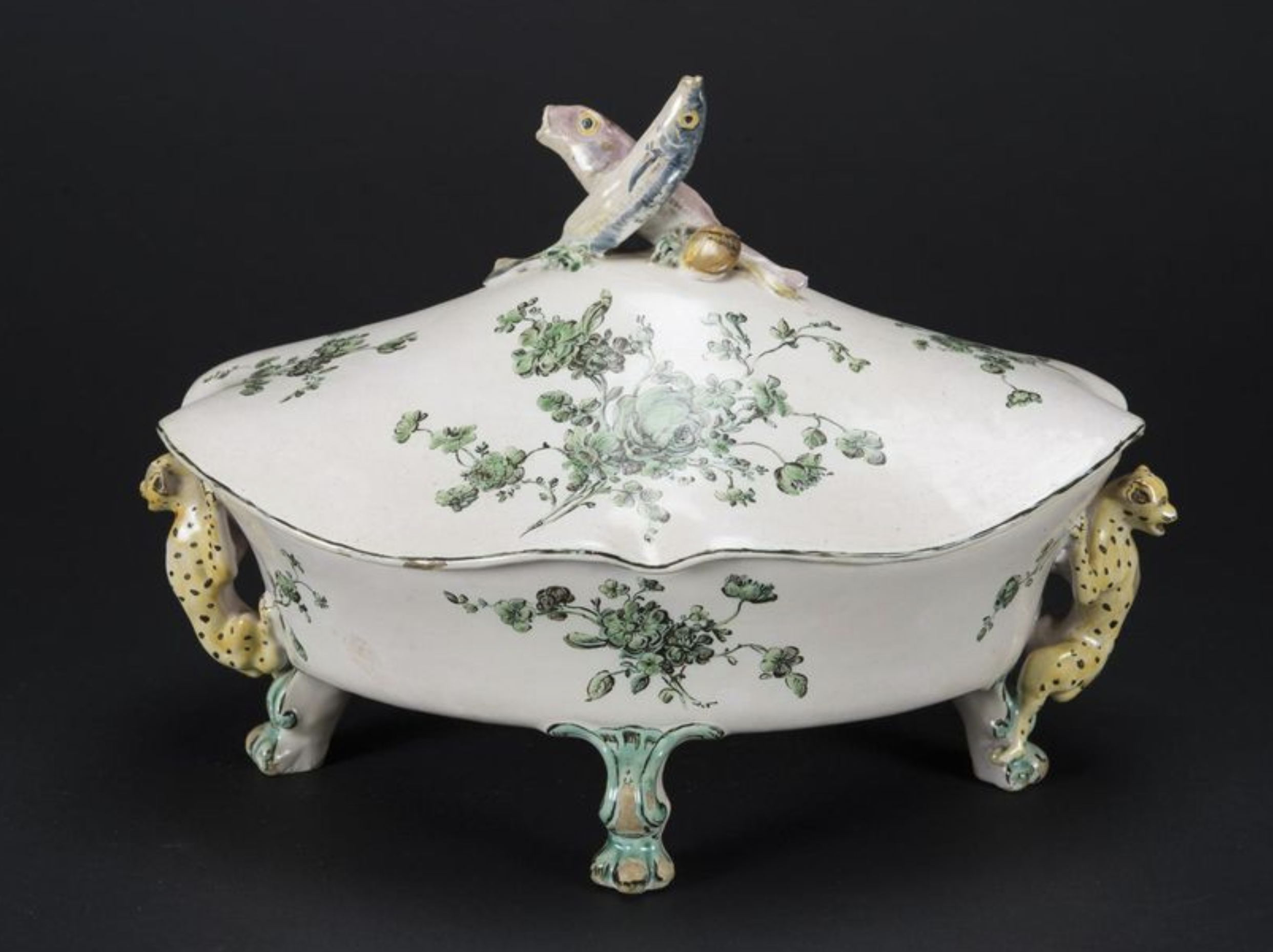 Soupière à décor de deux poissons, Manufacture de la Veuve Perrin, deuxième moitié du 18e siècle, 30 x 40 cm. Photo : Maison Richard, DR