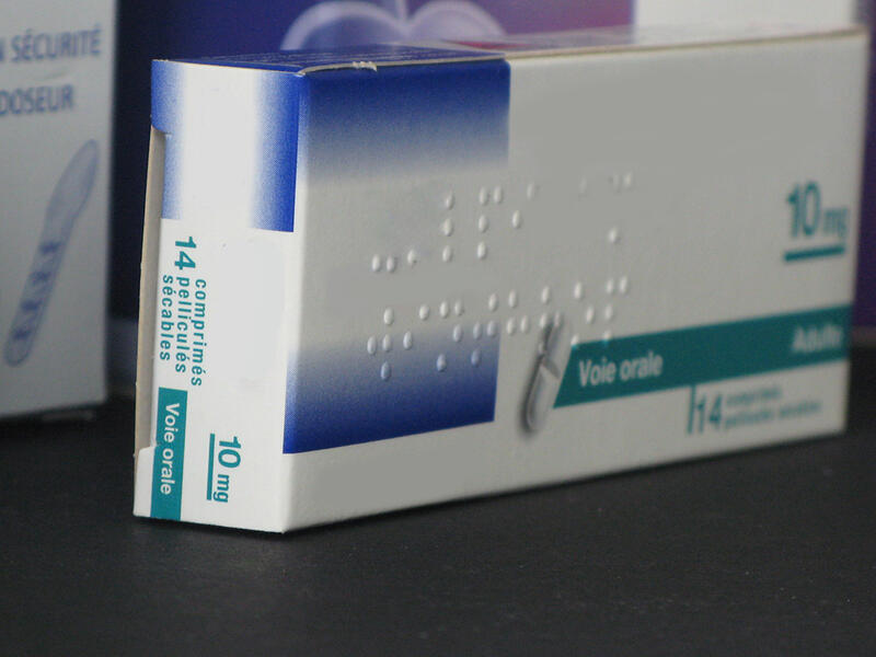 Boîte de médicaments avec inscription en braille. Photo : DR