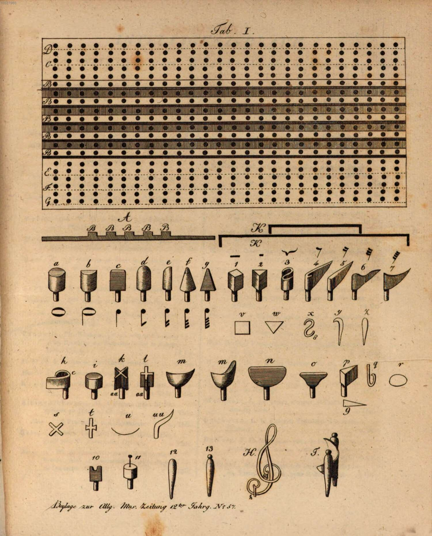 Mais Maria Theresia Paradis ne s’arrête pas là. Comme son ami Mozart, elle compose. Ses opéras, concertos et autres Lieder (des poèmes chantés) sont exigeants et font la part belle à la virtuosité. Et pour l’aider, son compagnon, Johann Riedinger, met au point un système de notation musicale. Paradis utilise donc unpanneau percé de trous qu’elle remplit avec des éléments métalliques représentant les notes. Un assistant recopie ensuite la musique sur une partition.