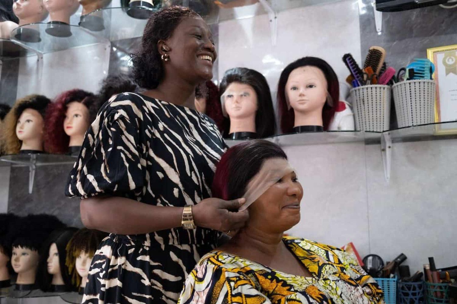 Abidjan, Côte d’Ivoire. Comme chaque jour, Ariatou Ouédraogo se rend dans son salon de coiffure. Certes, elle prend soin des cheveux de ses clientes mais, au gré de la discussion, elle prend soin d’elles… tout court !