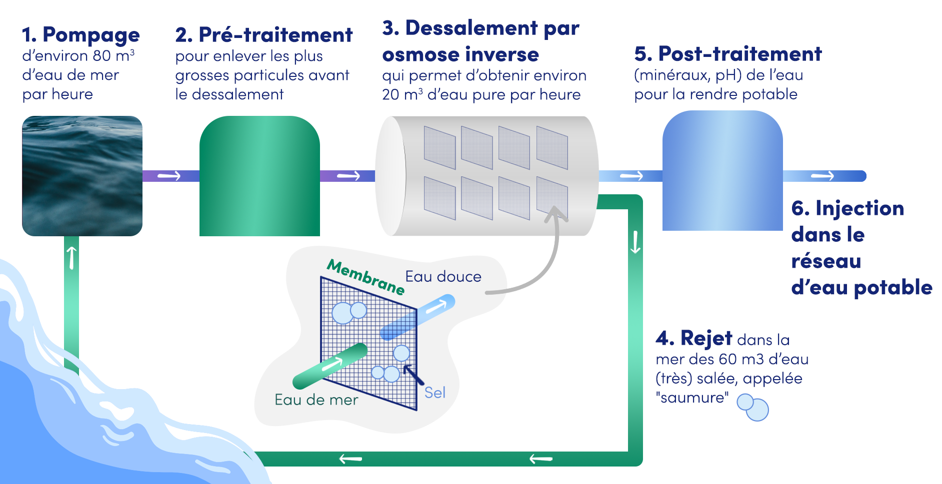 Installée en à peine 5 semaines pour faire face à une situation critique, cette usine temporaire utilise le principe de l'osmose inverse. Et ça fonctionne comment ?