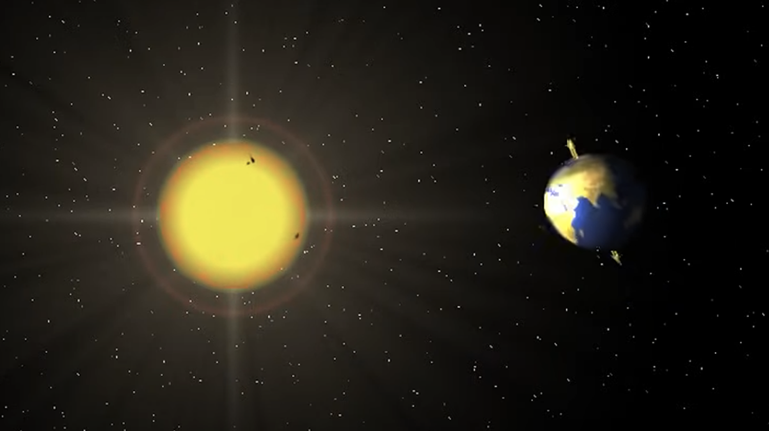 Cliquez sur l'image pour voir le double mouvement de la Terre (autour de son axe et autour du Soleil)