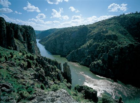 Le Douro, fleuve établissant une frontière naturelle entre la province de Zamora (Espagne) et le district de Bragança (Portugal). Photo : Miguel Ángel Quintas, CC BY 3.0