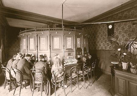 Un Kaiserpanorama au cinéma du Prater de Vienne, vers 1900. Photo : Filmarchiv Austria Cliquez pour découvrir un plan du Kaiserpanorama