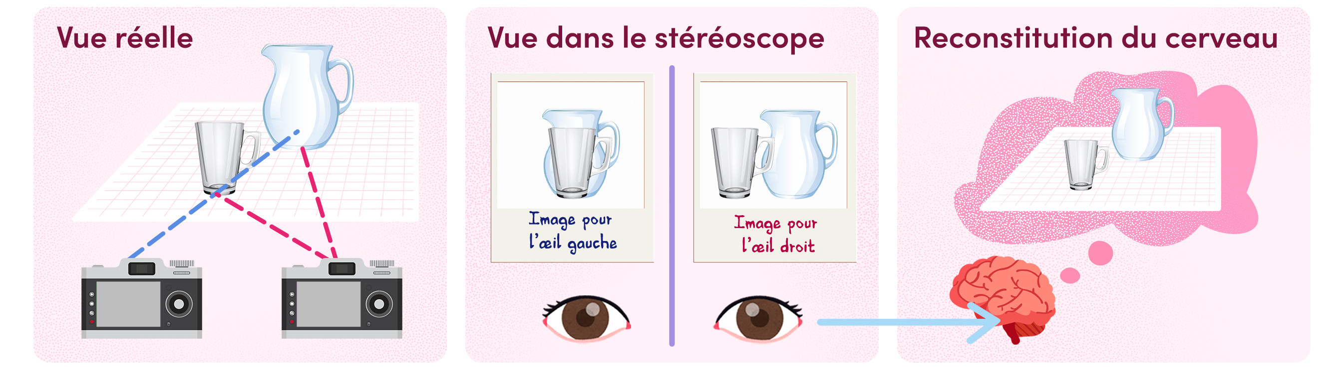 C'est un peu comme résoudre inconsciemment, en permanence et en direct, un jeu des sept différences: le cerveau reconstitue ensuite une vision en relief à partir de ces images un peu décalées.