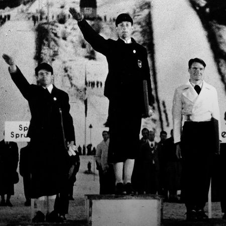 1936. L’Allemagne nazie accueille les Jeux Olympiques d’hiver à Garmisch-Partenkirchen. À l'issue de l’épreuve de ski alpin, le public assiste à une scène saisissante sur le podium. En première et deuxième position, les Allemands effectuent un salut nazi, vêtus de noir. L’homme en troisième position, dans sa tenue blanche, s’y refuse fermement et reste les bras le long du corps.