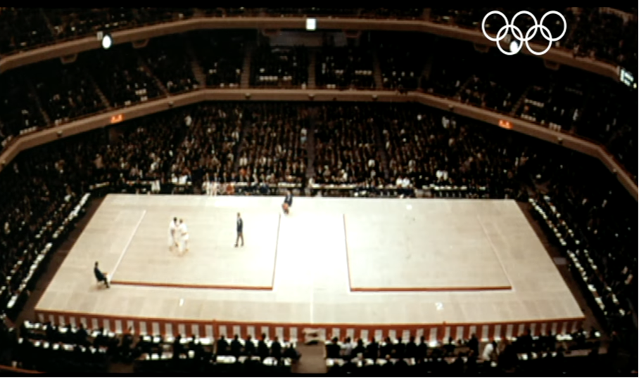 Budokan où s'affrontent Anton Geesink et Akio Kaminaga lors des Jeux Olympiques de Tokyo 1964. Photo : Olympics via YouTube